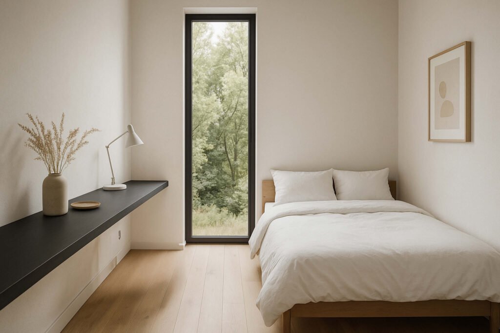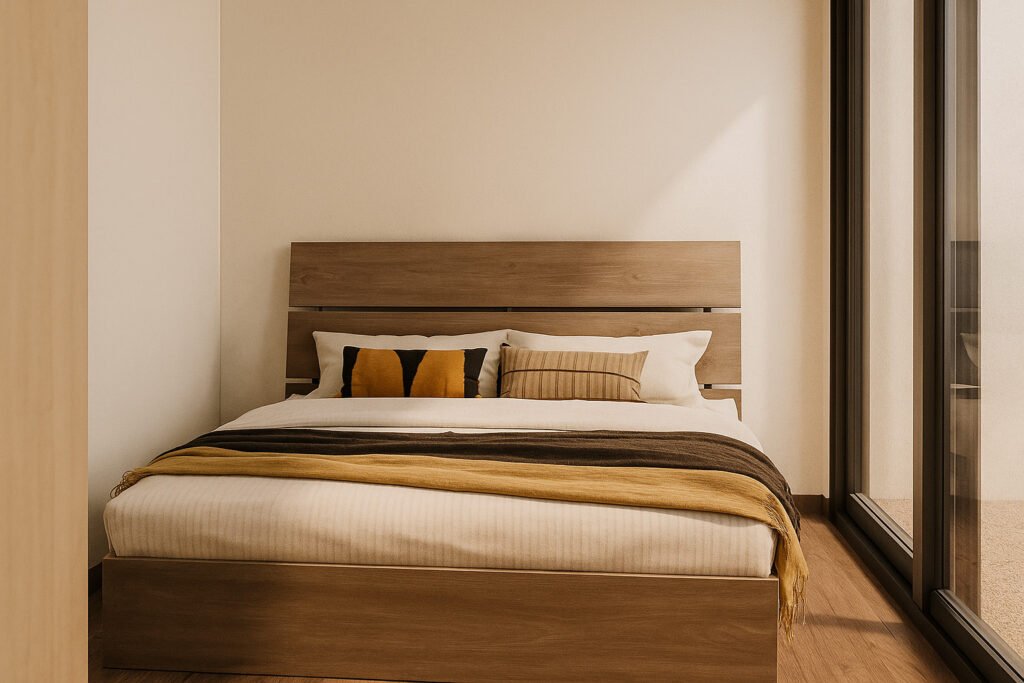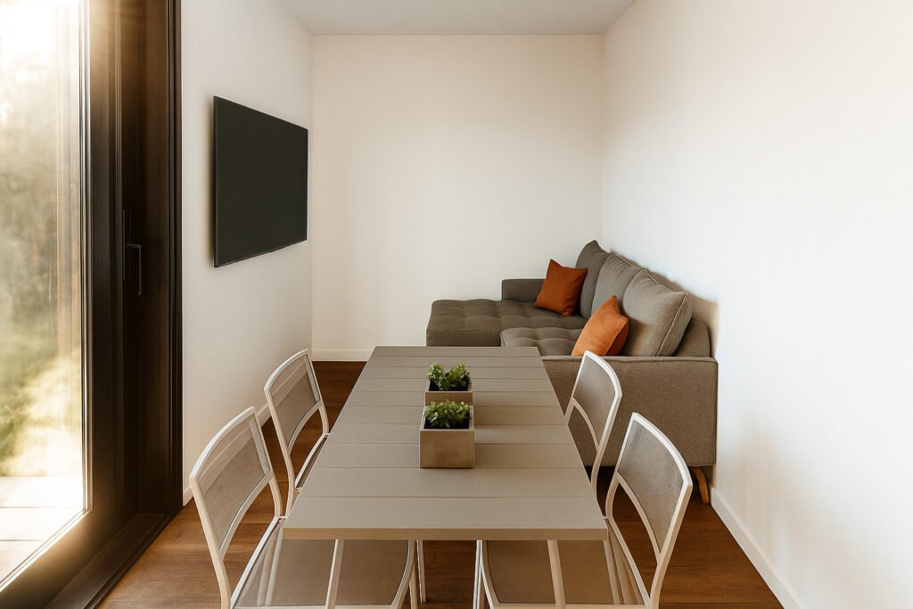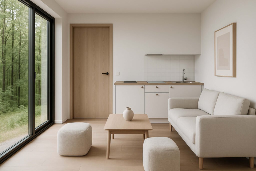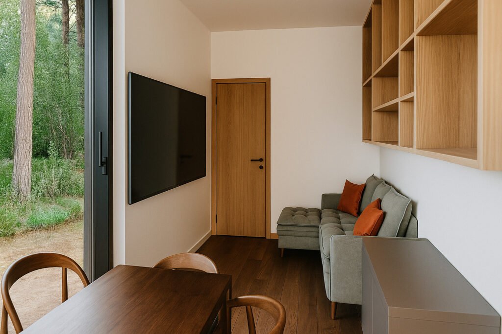Un dormitorio, living y cocina integrados para optimizar el espacio. La solución perfecta para airbnb o refugios en espacios limitados.