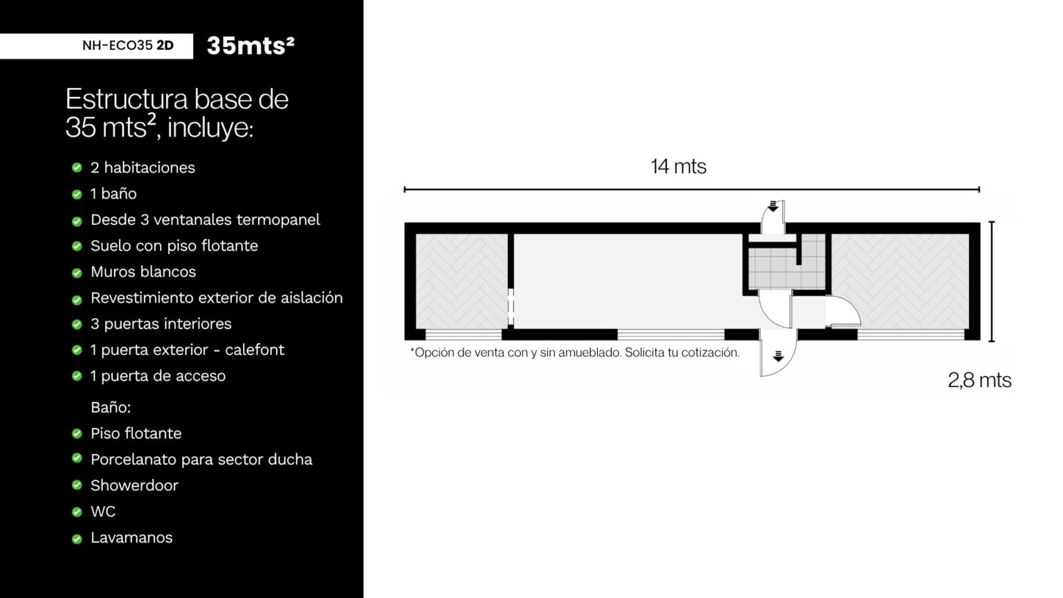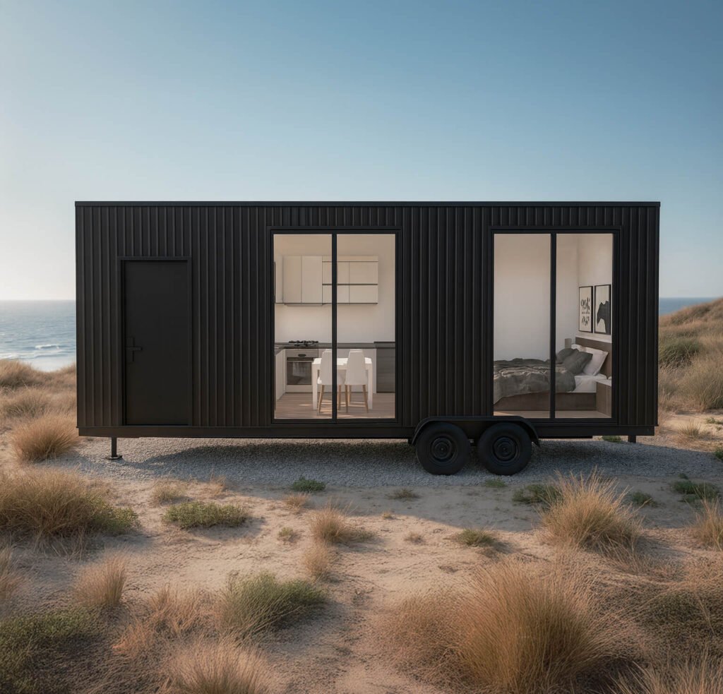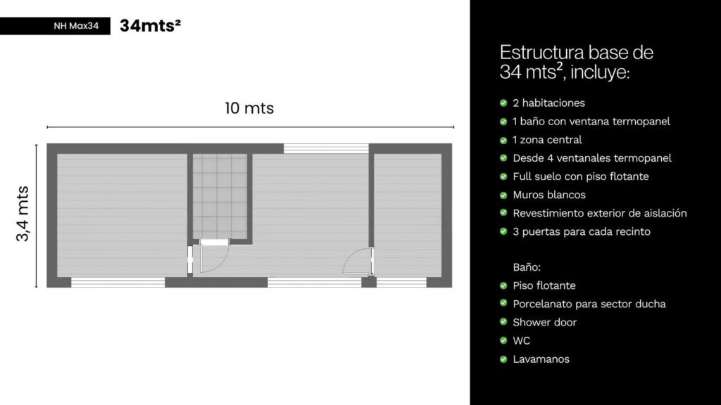 Dos dormitorios, living y cocina integrados para optimizar el espacio. Además la flexibilidad que te entrega que sea sobre ruedas es la solución perfecta para airbnb o múltiples refugios.