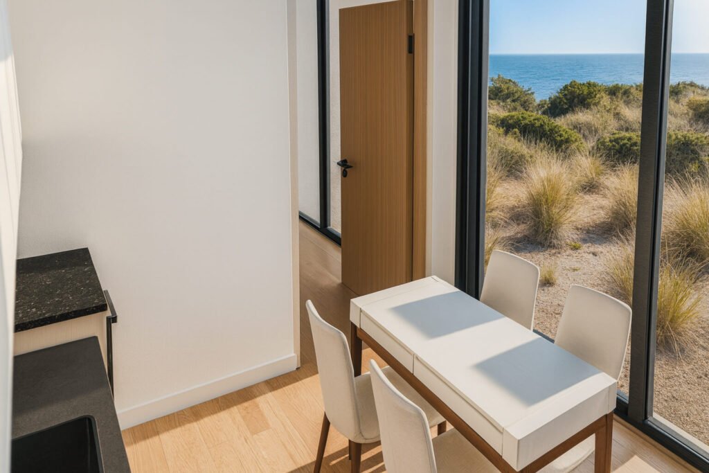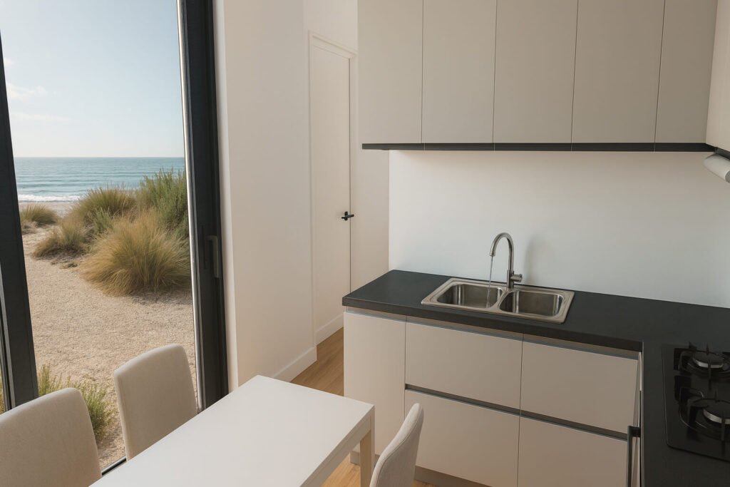 Dos dormitorios, living y cocina integrados para optimizar el espacio. La solución perfecta para airbnb o refugios en espacios limitados.